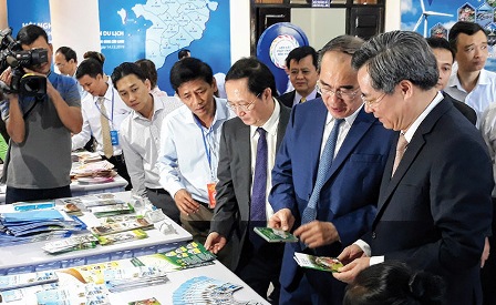 Lãnh đạo các tỉnh, thành phố tham quan các gian trưng bày, quảng bá tiềm năng DL bên thềm Hội nghị lãnh đạo TP. Hồ Chí Minh và 13 tỉnh, thành ĐBSCL về liên kết, hợp tác phát triển du lịch. Ảnh: M.Đ