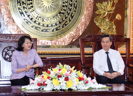 Bí thư Tỉnh ủy - Nguyễn Quang Dương (bên phải) tiếp Phó Chủ tịch nước - Đặng Thị Ngọc Thịnh.