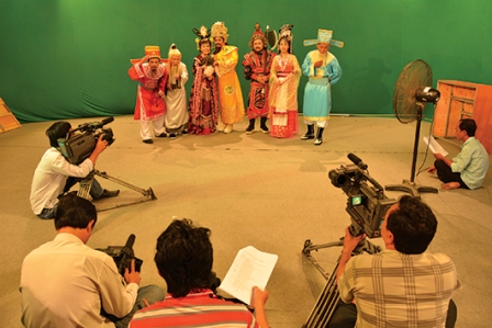 Phóng viên Đài PT-TH Bạc Liêu tác nghiệp chương trình Táo Quân. Ảnh: H.T